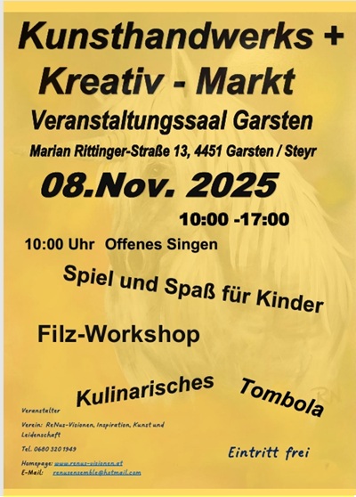 Am 11.Nov. 2023 fand unser zweiter Kunst-und Kreativmarkt im Reithoffersaal in Steyr statt.